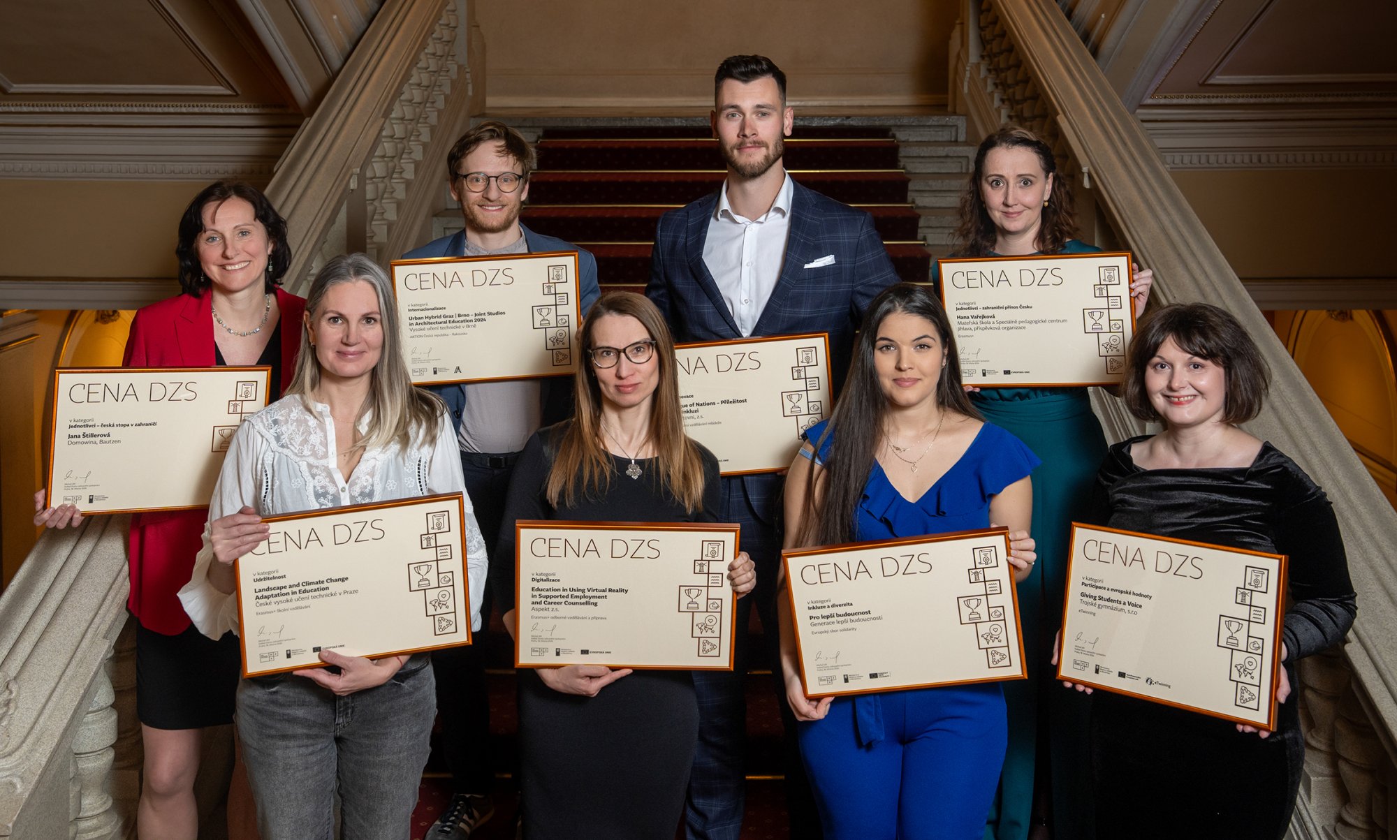 Dům zahraniční spolupráce (DZS) ve středu 18. 3. 2026 v pražském Národním domě na Vinohradech slavnostně předal Ceny DZS za rok 2025. Letošní ročník opět potvrdil, že mezinárodní vzdělávání má dopad daleko za hranice jednotlivých projektů i jejich účastníků. Přináší nové zkušenosti a podněty vzdělávacím institucím, organizacím i širší komunitě. Pomáhá rozvíjet otevřenost, toleranci a vzájemné porozumění, přispívá ke zdravé občanské společnosti, podporuje udržitelný způsob života a posiluje schopnost reagovat na nové výzvy.
